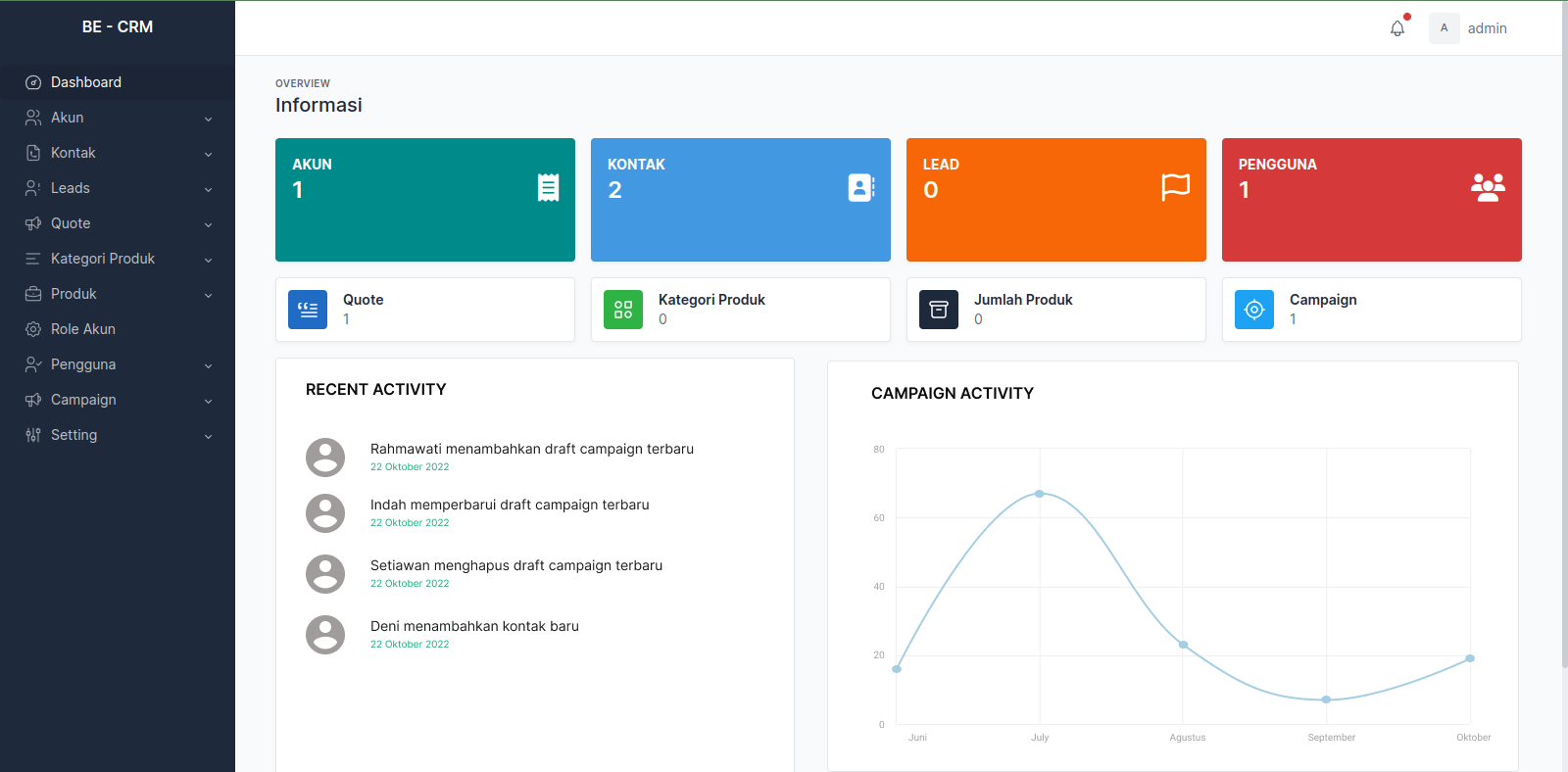 BE-CRM adalah sebuah sistem/aplikasi terintegrasi yang digunakan untuk mengelola hubungan antar pelanggan dan perusahaan.
